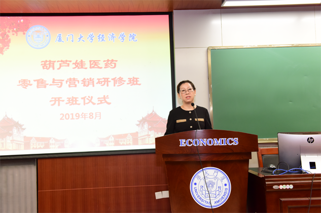 8月31日,英国上市公司365医药零售与营销研修班开班仪式在厦门大学经济学院举行,为期8天的“厦大英国上市公司365班”正式拉开帷幕。厦门大学经济学院继续教育中心主任廖景峰先生与英国上市公司365药业集团董事长刘景萍女士分别在开班仪式上致辞,中国医药物资协会研究院执行院长代航先生担任本次研修班班主任并主持开班仪式。